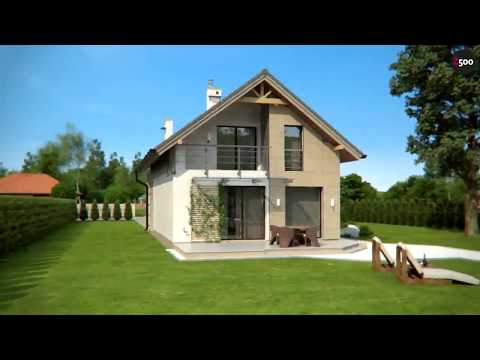 Проект Z299 представляет дом простой формы с двускатной кровлей, с террасой над гаражом. Проект подходит, также, для узкого участка.